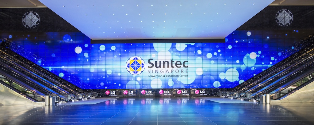 Suntec Singapure (Singapore), un singular edificio que acoge las principales exposiciones y convenciones que tienen lugar esta ciudad asiática, cuenta en su vestíbulo principal con ‘The big picture’, calificado por Guinness World Records como el videowall de alta definición más grande del mundo, que se ha convertido también en un punto de atracción y referencia fotográfica para los profesionales que asisten a congresos, delegates, visitantes y compradores de la ciudad.