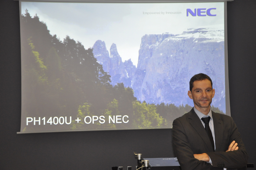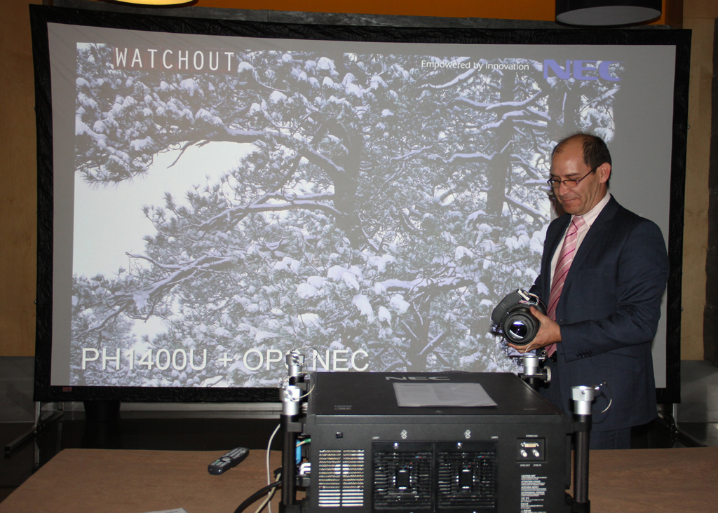 “Si tenemos que destacar algún producto estrella de estas jornadas, los equipos que más han llamado la atención son el modelo PH1400U, que cuenta con tecnología DLP 3chip y 13.500 lumens, y el PE401H, un equipo de óptica fija con resolución nativa Full HD y 4.000 lúmenes que cuenta igualmente con unas prestaciones muy completas”, comenta Federico Haba, responsable de NEC Display Solutions Ibérica.