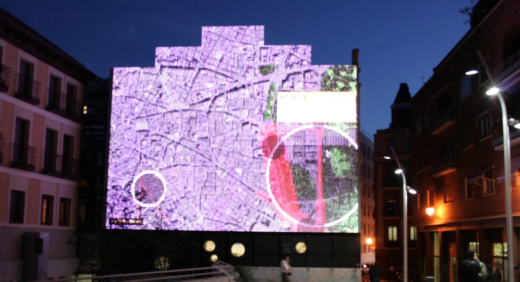 Para mejorar la interacción y la realización de proyectos interactivos basados en el reconocimiento de la imagen y el movimiento, sobre la fachada digital de la madrileña plaza de Las Letras se instaló un sistema de cámaras CCTV color de recogida de imágenes en tiempo real.