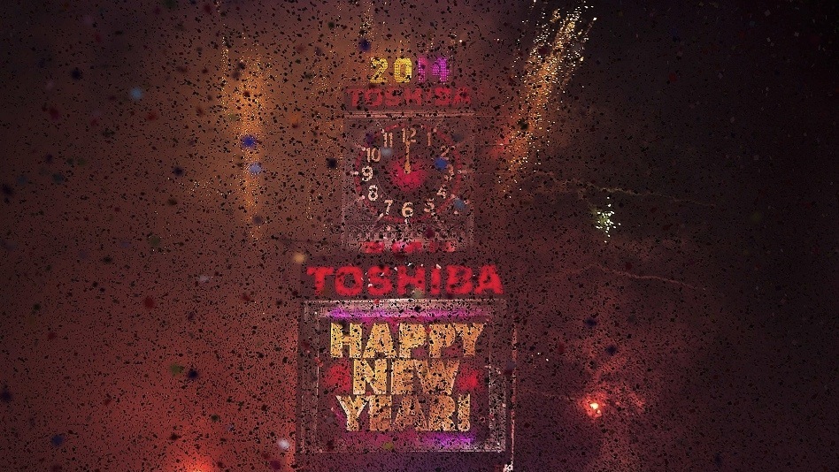 The Toshiba Vision display receives 2014 in New York's Times Square before a million people