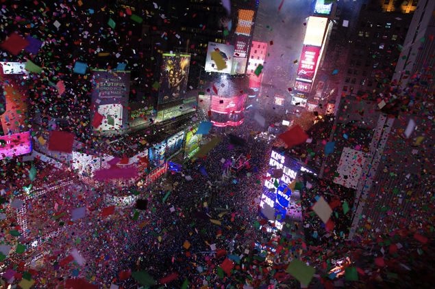 La pantalla que corona el edificio central de Times Square, denominada Toshiba Vision, situada justo debajo de la bola de cristal luminosa, mostraba la cuenta atrás para recibir el nuevo año en la ciudad de los rascacielos, que se reforzó con un espectáculo audiovisual de efectos pirotécnicos.