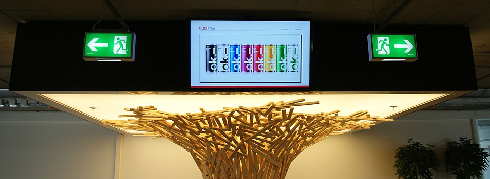 Executable with any digital signage player, These screens with voice thus achieve a multisensory experience, encoding and transmitting high-quality audio signals over IP networks to access points near each screen. These access points allow a WiFi connection to transmit audio signals to clients' mobile devices in perfect synchronization with the video signals of the screens..