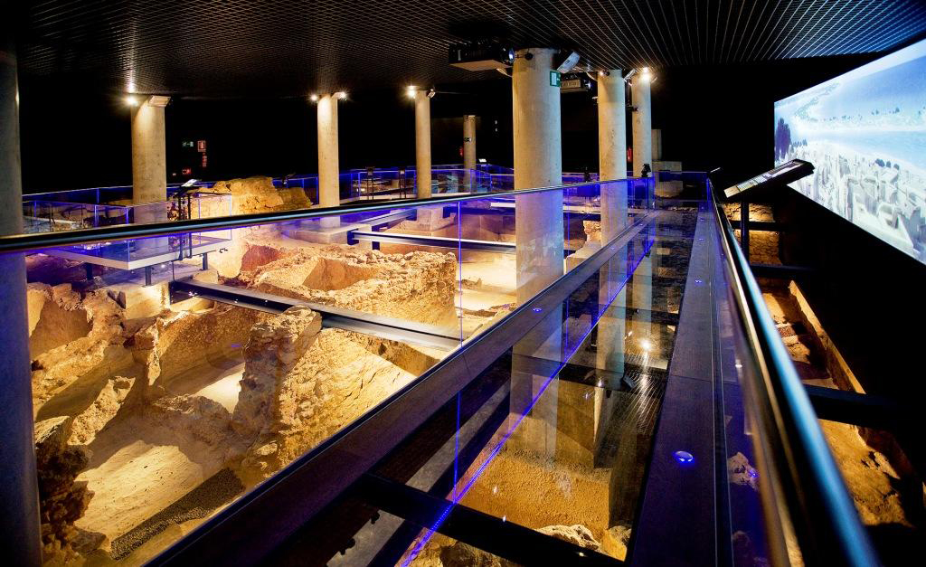 In parallel, una gran instalación audiovisual de más de 13 metros permite asistir a la evolución de la ciudad, desde sus orígenes fenicios hasta su consolidación como ciudad romana.