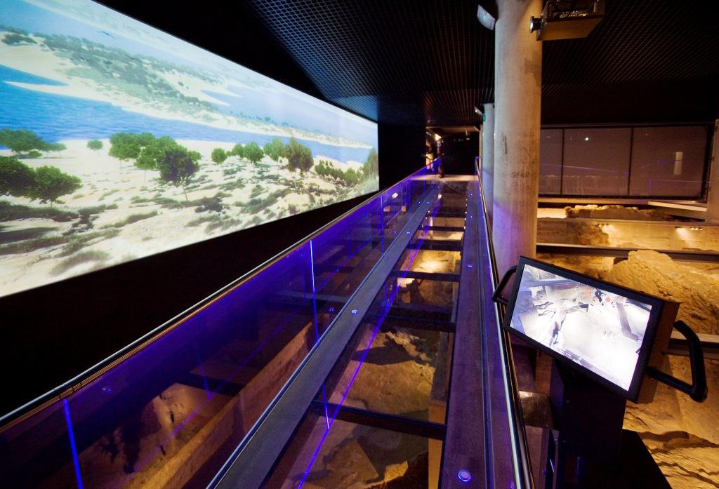 Desde este auditorio los visitantes pueden contemplar una panorámica del museo e iniciar su recorrido sobre una pasarela volada que atraviesa todo el yacimiento.