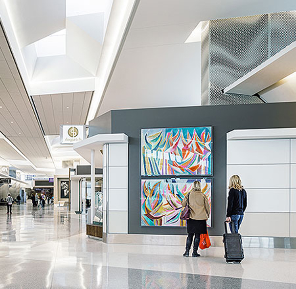 El proyecto arquitectónico ha sido realizado entre las empresas Gensler y Hensel-Phelps, while Razorfish Emerging Experience Group ha sido la responsable de los aspectos tecnológicos. Entre los tres han creado un entorno que donde prima la sostenibilidad y busca mejorar la experiencia de los viajero. En esta cubierta se han instalado elementos arquitectónicos que buscan los espacios abiertos y un gran ventanal de 23 metros de altura muestra una vista panorámica de las pistas de aterrizaje, al tiempo que proporciona una gran luminosidad.