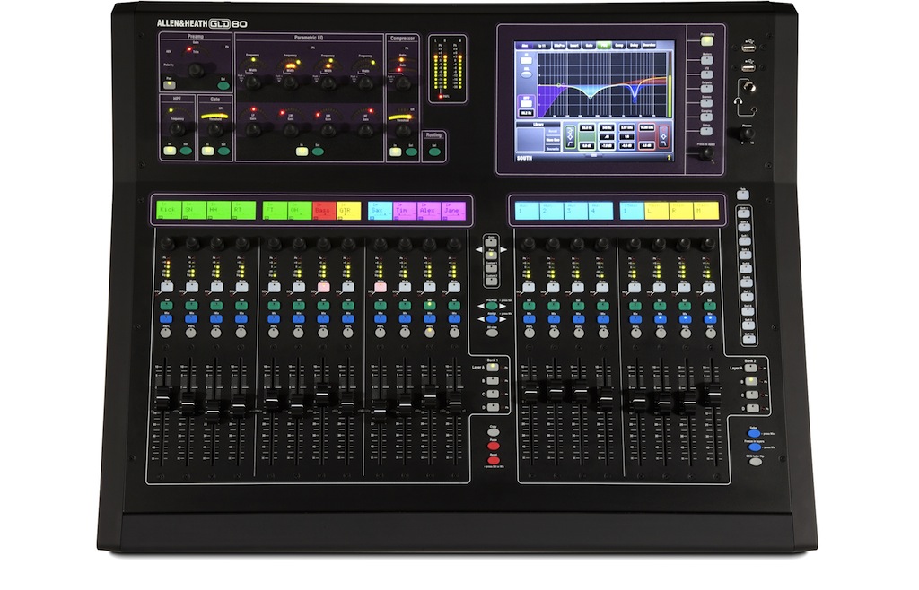 El mezclador GLD-80 constituye el núcleo del sistema, ya que ofrece 48 entradas de procesado, ocho retornos de efectos estéreo, treinta buses configurables, veinte canales de procesado de mezcla y potencia DSP para un procesado y gestión de audio eficiente y de alta calidad.