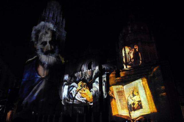 “Hemos tenido que montar dos torres enfrentadas -explica Testón- para cubrir y ‘manchar’ la mayor superficie posible de la fachada de la catedral, con un proceso muy complejo y laborioso, ya que hay que proyectar desde dos puntos distintos de la Plaza del Ayuntamiento para no generar sombras que enturbien las imágenes y mantener el hilo conductor de esta creación y que el público reconozca la historia que se muestra”.