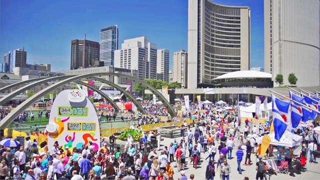 La popular Nathan Philips Square de la ciudad canadiense de Toronto ha sido el lugar escogido para instalar el reloj interactivo de cuenta regresiva para los Juegos Panamericanos y Parapanamericanos Toronto 2015, that will be held from 10 al 26 de julio y del 7 al 15 of August, respectively, de competición atlética de las naciones de las Américas que tiene lugar cada cuatro años.