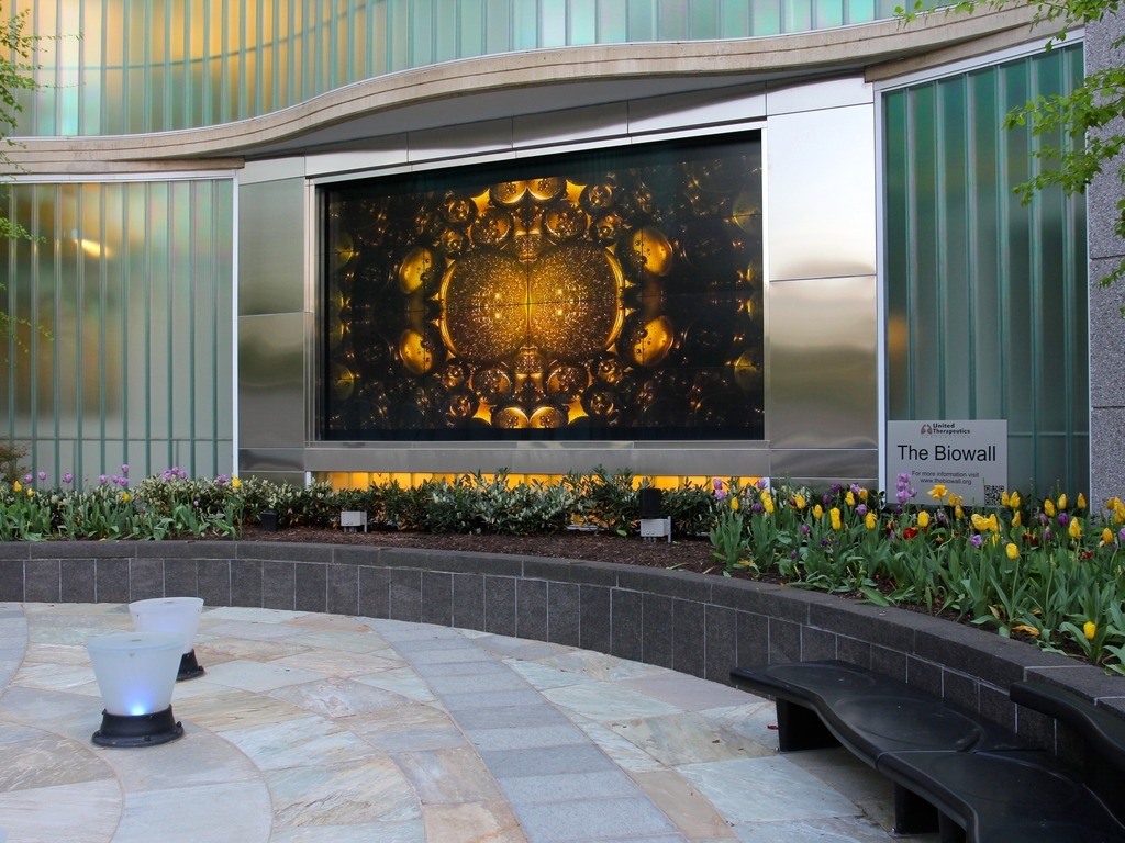 Biowall is an outdoor public audiovisual space located in Silver Spring, in the American state of Maryland, that the company United Therapeutics wanted to donate to the community where its headquarters is located. The objective of this generous initiative has not been, as usually happens, promote the brand of this company through images, corporate videos and messages, but “offering a gift of nature, art and science to the entire community”, says Avi Halpert, vice president of this company.