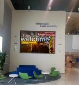 Estas pantallas indoor, with sizes of 5 y 2 square meters and pixel pitch 4 mm con encapsulado SMD, se han ubicado en las entradas de este nuevo espacio, inspirado en un mercado tradicional que reúne una veintena de marcas destacadas del sector de la alimentación y la restauración, e impactan visualmente en los visitantes mediante contenidos asociados con los productos, mainly, of this space.
