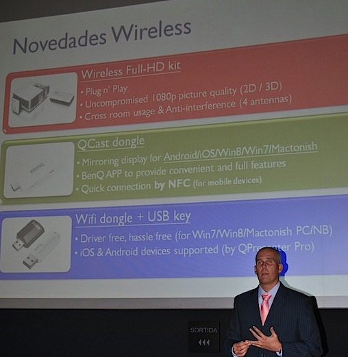 El fabricante de proyectores BenQ ha aprovechado el Simposium 2014 of Ingram Micro, celebrated the past 30 October in Barcelona (see news in Digital AV Magazine) para mostrar al canal de distribución sus soluciones inalámbricas para sus sistemas orientados al entorno educativo, empresarial y doméstico, “donde el único cable conectado al proyector es el de alimentación”, como explicó Umberto Ronchetti, business line manager PRJ de esta compañía.