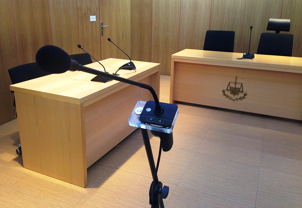 Un sistema microfónico adicional Shure ULXD24E/SM58, con encriptado de señal y conectado a un sistema de efectos LexiconPro MX200, permite modificar la voz del orador, en caso de tratarse de testigos protegidos.