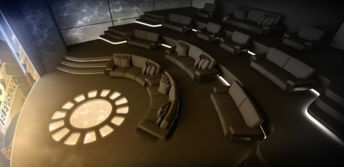 This space, creado por primera vez para una embarcación privada de gran eslora cuyo propietario quería probar nuevas propuestas tecnológicas, motivó la unión de este equipo para desarrollar un nuevo concepto audiovisual y cinematográfico con los parámetros de diseño para el IMAX Theatre en un espacio inusual, como el casco de un yate (que normalmente se utiliza para tanques y almacenamiento), que se podía comercializar en este segmento de mercado.