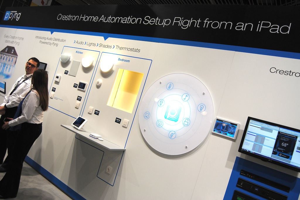 An ISE 2015, Crestron está mostrando la app Pyng capaz de automatizar desde un iPad iuminación, blinds, temperature, accessed, and included, el sistema de seguridad.