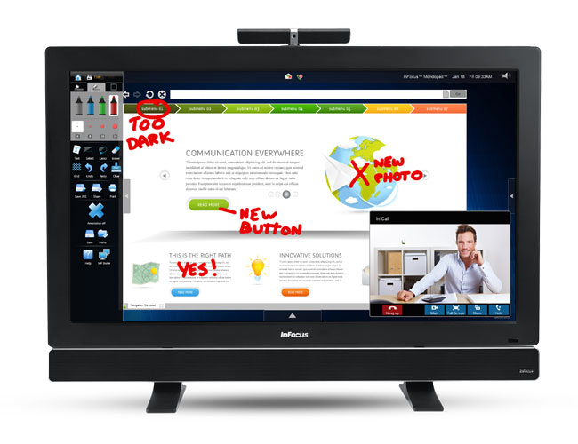 Con el nuevo Mondopad de 80 inches, InFocus ofrece un centro de comunicaciones óptimas para grandes grupos de trabajo en salas de conferencias, salas de formación o centros de reunión.
