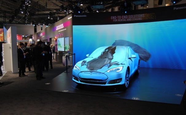 Quienes acuden estos días a ISE 2015 quedan impresionados por la proyección de un mapping que Panasonic está llevando a cabo sobre uno de los últimos automóviles de Tesla, compañía con la que el fabricante nipón mantiene un acuerdo estratégico.