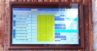 Las otras dos pantallas de la Serie E, una del modelo MultiSync E424, que se ubica en la sala de profesores, y otra MultiSync E554, instalada en el exterior para que los profesores puedan ver cuándo y dónde es su siguiente clase sin tener que entrar al edificio ni quitarse los esquís. Estos sistemas cuentan con un panel LCD profesional con retroiluminación S-PVA, resolución Full HD y sensor ambiental para su idónea instalación en exterior, escapes, etc.