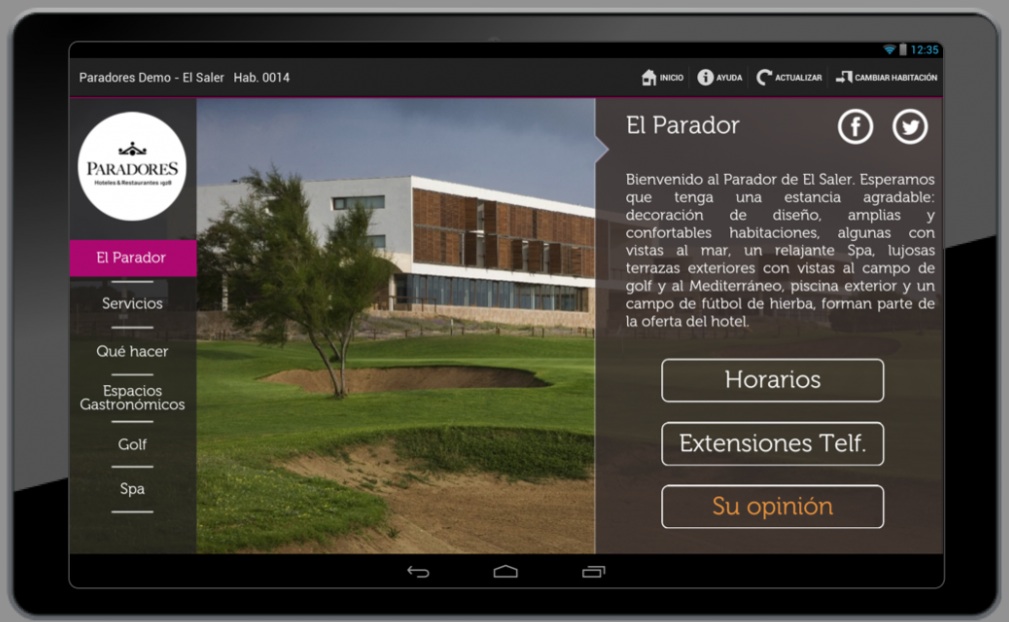 Mejorar el servicio, confort y estancia de los clientes que acuden a sus instalaciones es el objetivo del proyecto realizado por Paradores de Turismo de España en algunos de sus establecimientos mediante una solución basada en dispositivos móviles (tablets) con una aplicación a medida, aportando un valor añadido y diferencial en el sector hotelero.