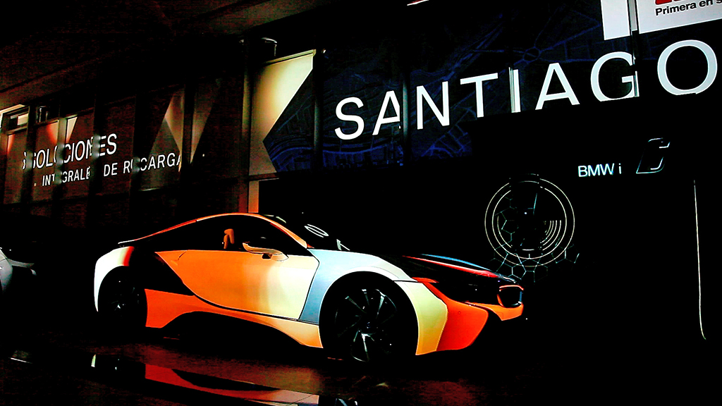 En su edificio de Santiago de Chile, BMW realizó el lanzamiento oficial de sus nuevos modelos i3 e i8. Un evento que estuvo marcado por la proyección de un videomapping, que se realizó sobre los propios vehículos y para el que se utilizaron seis proyectores DHD800 y el procesador de vídeo Spyder X20 de Christie.