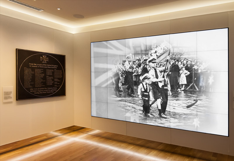 En ellos se visualizan fotografías y vídeos que documentan la vida cotidiana de los soldados australianos en la guerra. Las imágenes originales fueron escaneadas en alta resolución y digitalmente restauradas para la presentación en la exposición. El más grande de los dos videowalls, con un formato de 7×7, muestra imágenes con una resolución de más de 23,5 megapixels.