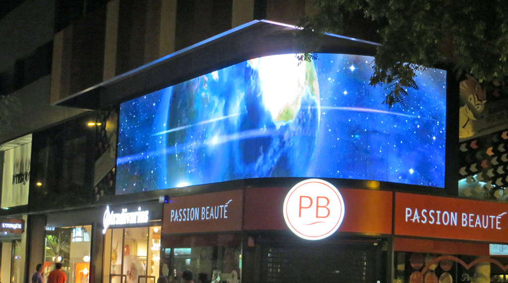 This project, llevado a cabo por la empresa de publicidad DooH Akelarre Media, tiene unas dimensiones de 30 metros cuadrados y ofrece una resolución de 1200×256 pixelated, alcanzando un total de 307.200 pixels, en una proporción de 5:1. Esta pantalla con forma curvada utiliza la tecnología SMD y se caracteriza por su estabilidad, que recuerda al estilo de las pantallas de Times Square de la ciudad de Nueva York.