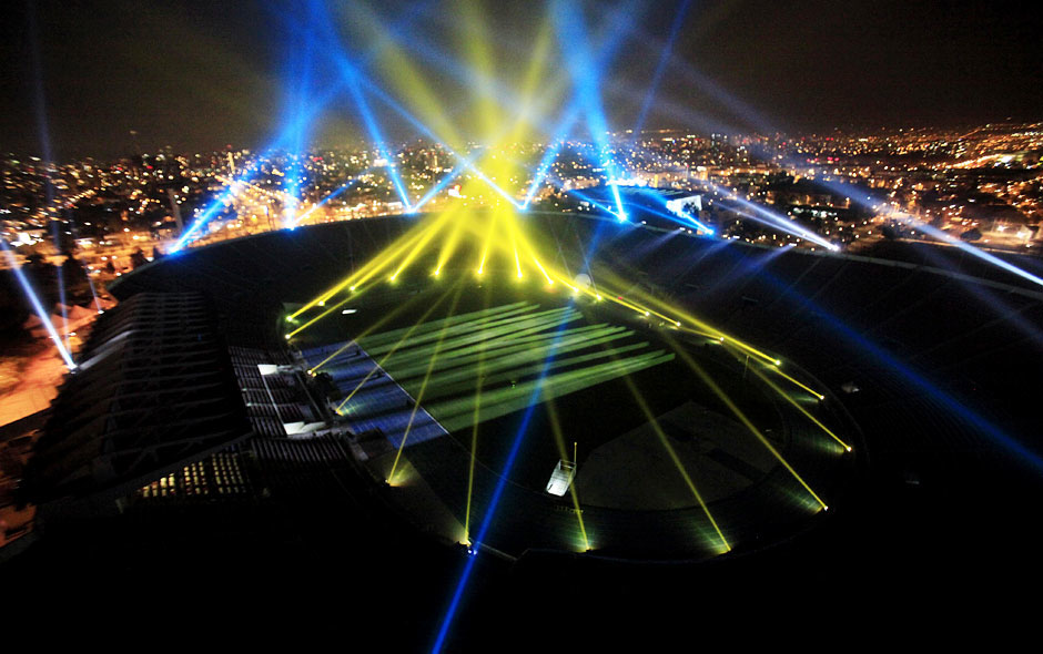Las luminaria Pointe se ubicaron alrededor del campo de juego para crear diferentes haces de luz y espectaculares efectos aéreos mientras se celebraba el espectáculo de inauguración, en el que participaron seiscientos actores, músicos y bailarines, con un escenario decorado con doce gigantescas bolas iluminadas desde su interior que representaban a cada una de las naciones de la competición.