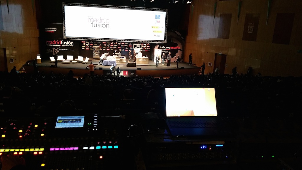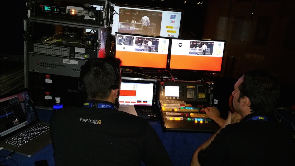 Miguel Barquero rememora los detalles de dicho evento, al que asistieron más de 10.000 visitantes entre profesionales, exhibitors, prensa y público: “Ubicamos el proyector en la parte superior trasera del auditorio, a una distancia de proyección de 32 metros y disparando sobre una pantalla de 14×4. Trabajamos con la resolución nativa 4K del equipo proyectando fondos, videos, CCTV, Power Point,… desde un procesador de señal 4K Ascender 16 of Analog Way y un mezclador Atem 2 4K the Blackmagic Design”.