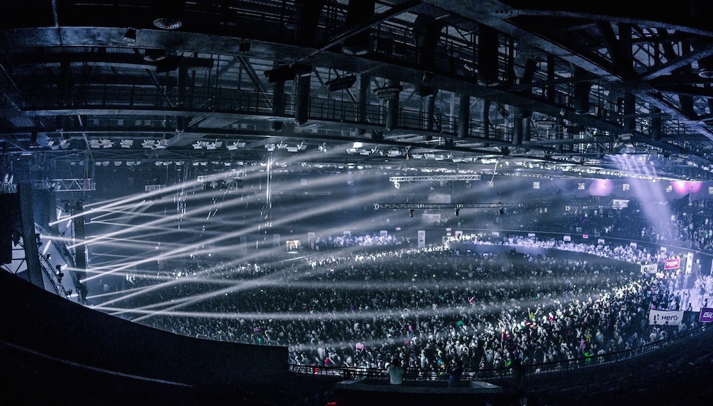 Specifically, for the lighting system have been deployed 54 Beam moving head units Elation Platinum Beam 5R, installed throughout the stage, along with several large LED screens. Six units of the hybrid moving head (Beam effect and Spot effect) Elation Platinum SBX were located next to the DJ booth, and on this occasion they were used together with a MYO gesture control system, connected to lighting control console.