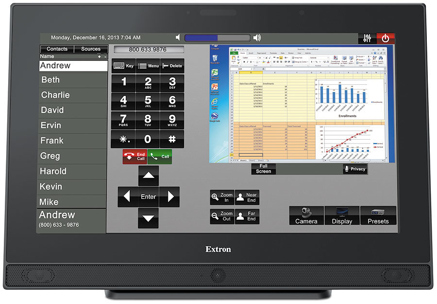 The capacitive touch screen 18 Bit color offers a dynamic view and more responsive control surface. Both models feature video preview inputs that support high-resolution HDCP-compliant video from HDMI sources and Extron XTP devices..