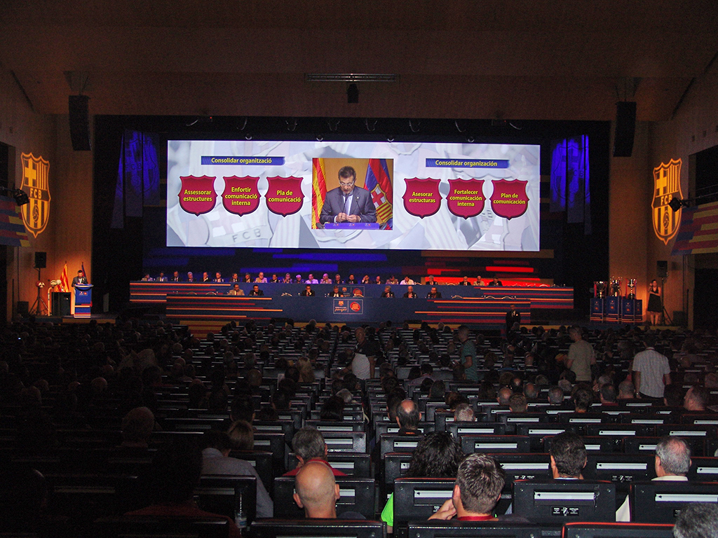 With the Christie Boxer 4K projector 30.000 lumens and the Dataton Watchout system, Those attending the Penyés Congress of the Barcelona Football Club were able to enjoy images projected in HD on two screens. 16:9 where the speakers' interventions were displayed.