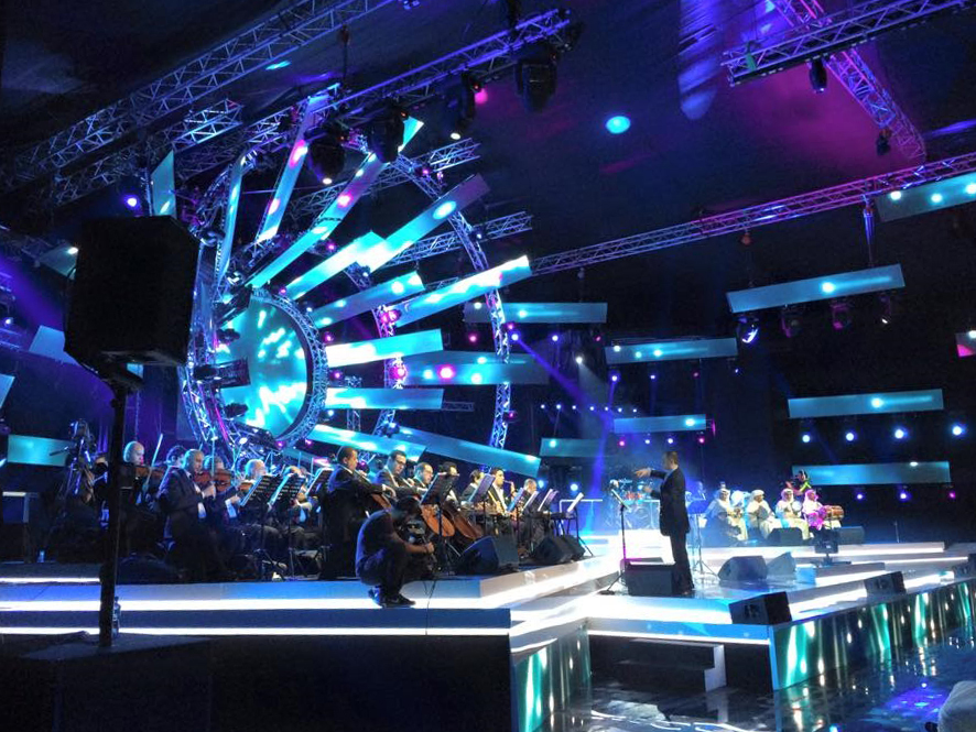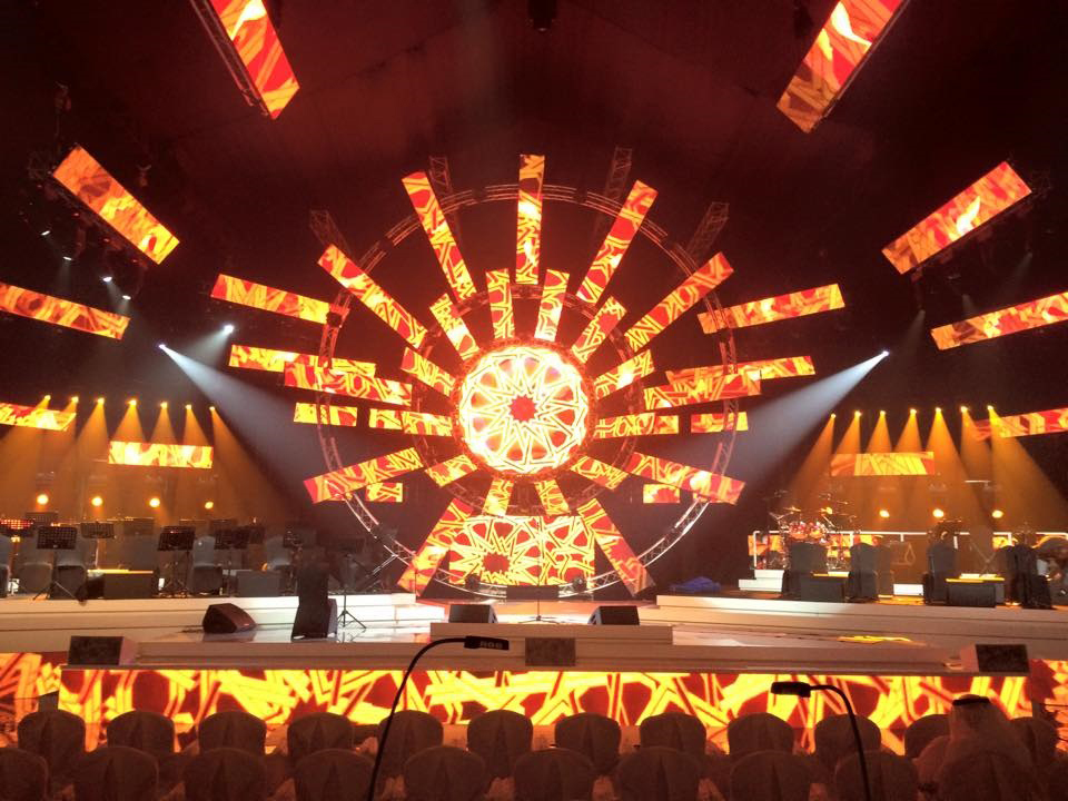 Trescientas unidades del panel Led de vídeo Elation EZ6 fueron utilizadas para formar la estructura circular en forma de rosa que protagonizaba el escenario ubicado en la pista del Kuwait Ice Skating Rink. Entre los pétalos se instalaron diferentes equipos del mismo fabricante para conseguir un espectacular efecto de iluminación.