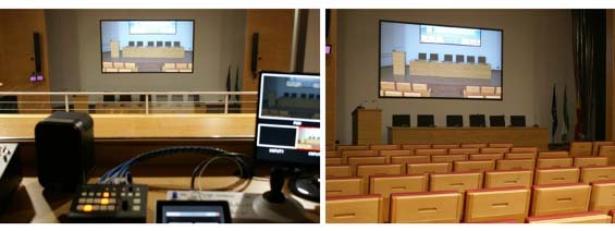 Estos espacios cuentan también con sistemas profesionales de sonorización y microfonía inalámbrica, además de un centro de control totalmente equipado con procesadores de audio, equipos de producción y distribución de señales de vídeo HD y un sistema de control remoto personalizado con pantalla táctil inalámbrica para la gestión remota de toda la infraestructura instalada.