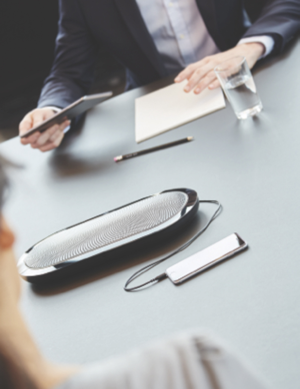 Jabra Speak 810 es un dispositivo inteligente de sonido que facilita conferencias en salas de reuniones que superan una superficie de 100 metros cuadrados con más de 15 personas reunidas, aportando una entrega de sonido cristalino, sin ruido de fondo.
