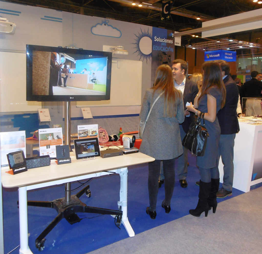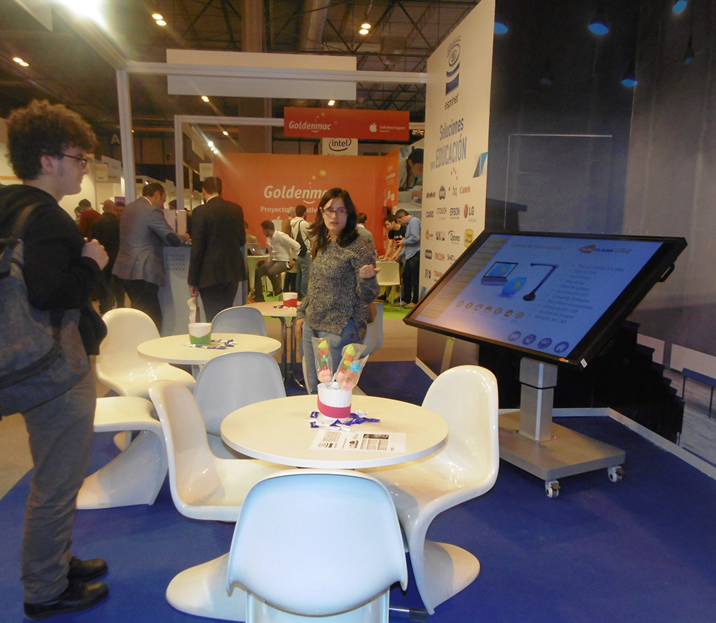 En el stand de este mayorista pueden verse desde pizarras interactivas, proyectores de lente ultracorta o interactivos, tablets y protectores, muebles para guardarlas, soportes, pantallas táctiles de gran dimensión o incluso robótica para la enseñanza.