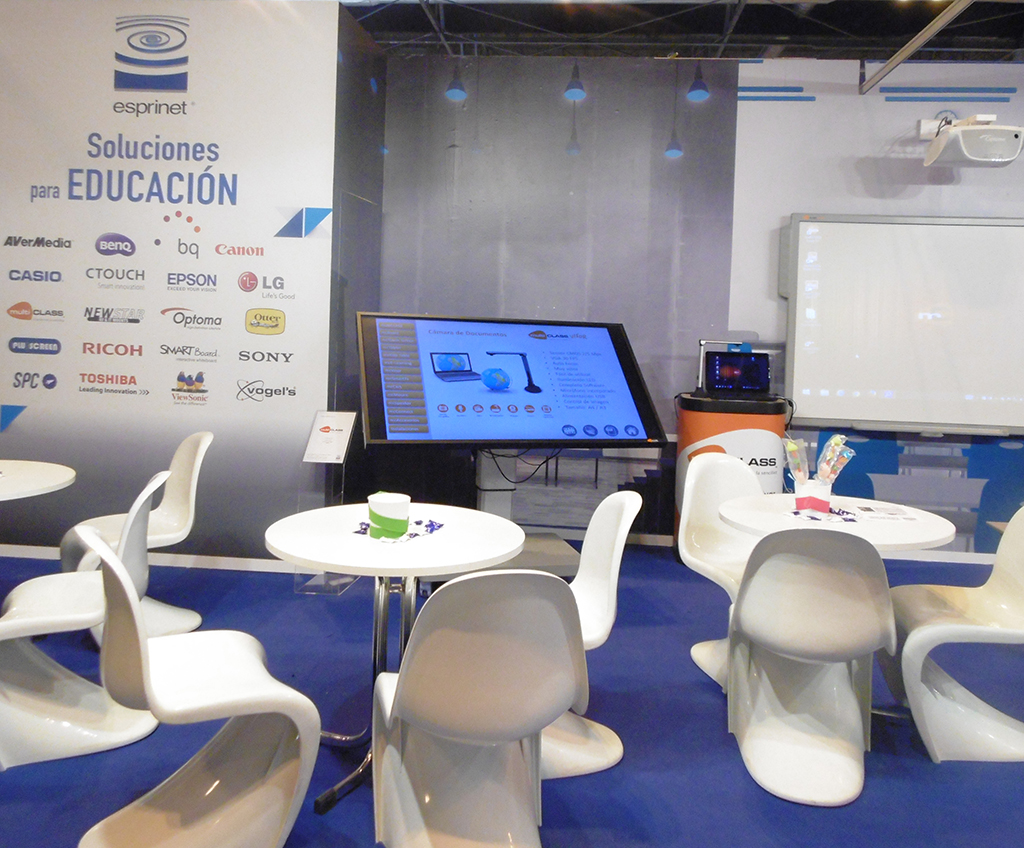 En el stand de Esprinet se puede interactuar con innovadoras soluciones diseñadas para el mercado educativo como pizarras digitales, projectors, tablets o pantallas táctiles de gran formato. Una completa oferta con la que ha acudido este mayorista a SIMO Educación de la mano de fabricantes como Avermedia, BQ, Epson, MultiClass, Optoma, Otterbox o Vogels.