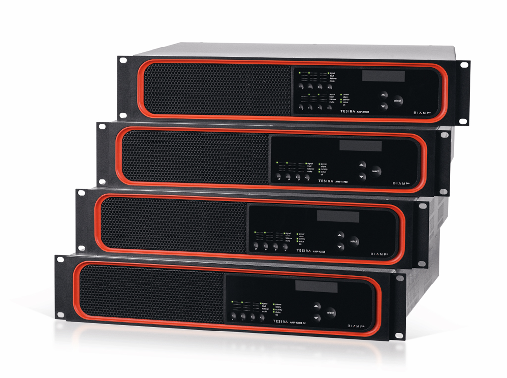Los nuevos amplificadores Tesira de dos unidades incluyen el modelo de cuatro canales de 175W AMP-4175R, de ocho canales de 150W AMP-8150R, de cuatro canales de 350W AMP-4350R, y el de cuatro canales de 300W AMP-4300R CV, este último para línea de 100V/70V.