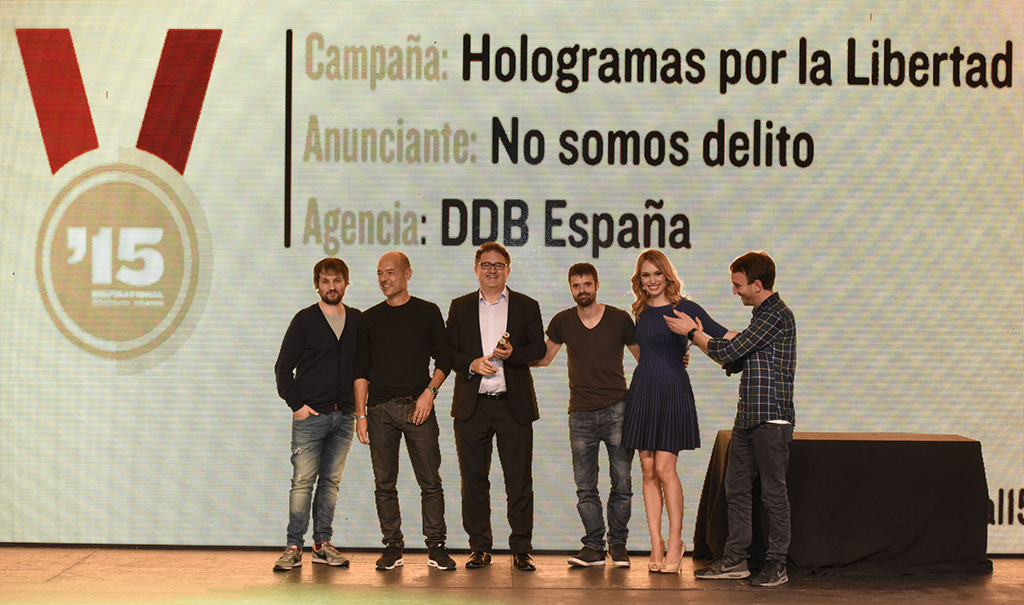 The great winner of the Inspirational awards 2015 ha sido la campaña Hologramas por la Libertad para No somos delito que ha obtenido el Gran Premio y tres oros. Su creadora, DDB, se alzó como el Anunciante del Año.
