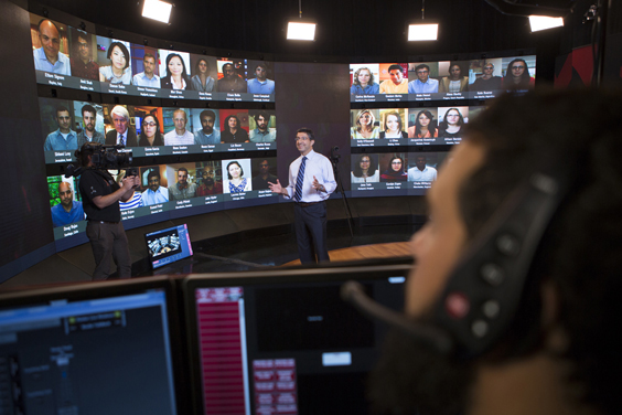 Students who want to participate in Harvard HBX Live can connect from anywhere in the world and at the same time to take part in one of these real-time classes taught by HBS professors from a television studio, located on the public station WGBH in downtown Boston.