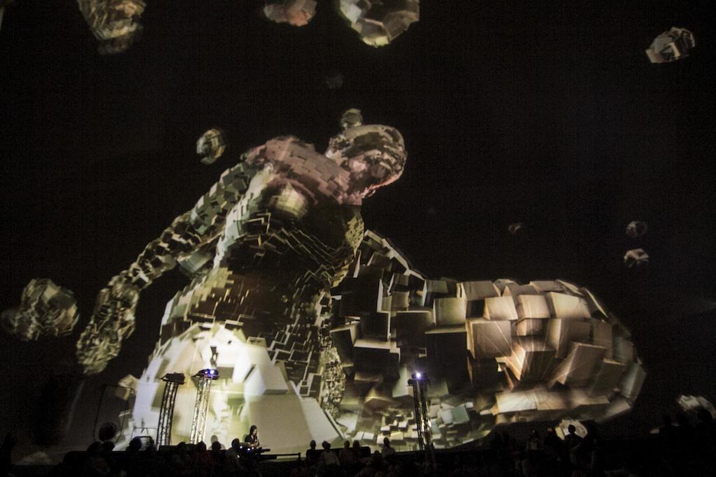 Imagine a big dome, a 360º scenario, an unlimited projection, the emotion of accessing a world of sensations caused by the fusion between music and digital image, large structures that change, that generate depth so that the viewer's view gets lost between notes and pixels...