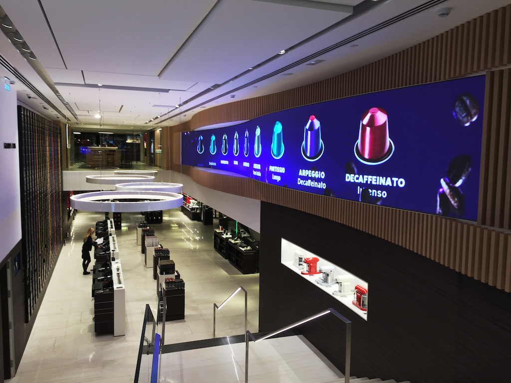 The new Nespresso flagship in Barcelona is designed around a large curved Led Dream screen