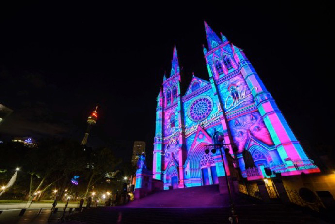 La catedral de Santa María ofrece una gran proyección de mapping para recrear el significado que la Navidad tiene para la ciudad de Sídney, mientras que Martín Place atrae a los visitantes desde su icónico edificio, en forma de platillo volante, que simula un carrusel donde las imágenes cobran vida. Dos proyectos en los que TDC ha participado con su tecnología de proyección de vídeo.