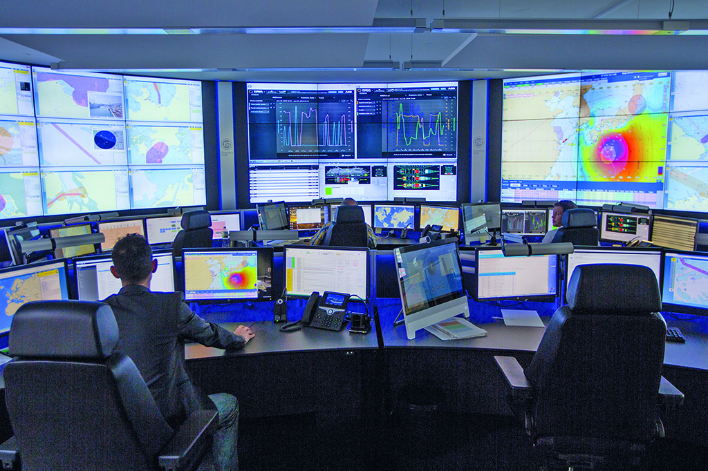 Sobre la base de los datos recogidos en el FOC expertos en Hamburgo reciben una panorámica general sobre la situación real. La instalación curvada de los videowalls asegura que las personas que trabajan en la sala de control tengan un ángulo de visión perfecto en todas las pantallas.