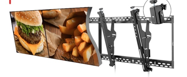 La compañía audiovisual ha desarrollado un sistema montado en placa de pared de conexión, con ajuste en altura y profundidad e inclinación, para pantallas digitales, of 46 a 48 inches, diseñadas para restaurantes de servicio o menu board (QRS).