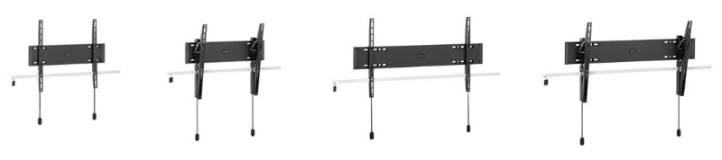 The Series 4000 tiene dos configuraciones disponibles: fija, para ubicar las pantallas a sólo 27 mm. de la pared y son compatibles con pantallas de 42 a 80 inches (until 75 Kg.), e inclinable, of 52 mm. deep, compatibles con displays de 42 a 65 inches (until 30 Kg.) y con la posibilidad de inclinar el sistema 15 grados en incrementos de 5º.