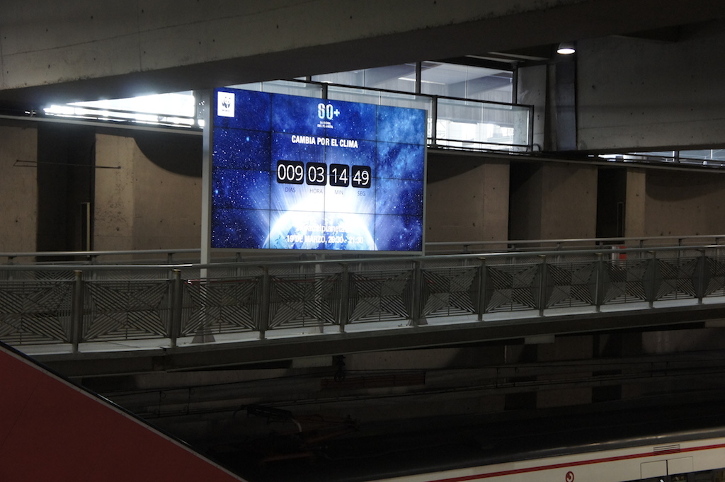 With this reason, Tres60 Multimedia, UTE formada por Impursa y Telson que comercializa la publicidad de Renfe y Adif throughout Spain, se suma con estas entidades por primer año a la mayor movilización global contra el cambio climático con la puesta en marcha de una acción publicitaria basada en la ‘cuenta atrás’, activada en los siete videowalls de gran formato ubicados en las estaciones de Madrid Puerta de Atocha, Atocha Cercanías, Barcelona Sants y Alicante.