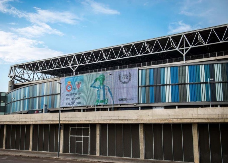 The stadium, with capacity for 40.500 aficionados y construido en 2009, fue galardonado por la Uefa como uno de los más modernos de España. A esta propuesta visual de ingresos publicitarios, añade su cercanía con el centro comercial Splau, así como a una de las principales autopistas de acceso a la ciudad y al aeropuerto, por la que circulan unos 180.000 vehículos al día.