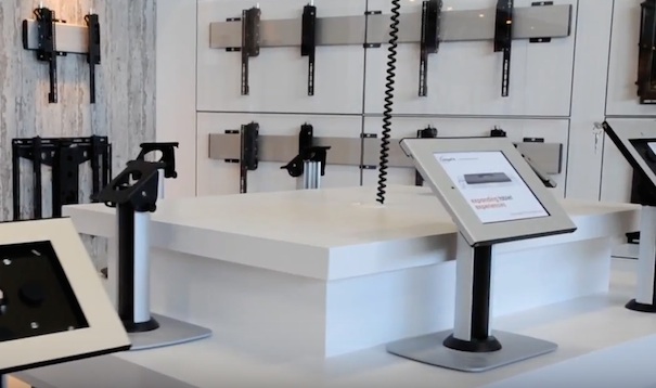 El showroom, with an industrial design, It is structured in different areas to show in detail supports for plasma screens, LCD, Led, videowall, projectors, tablets and image and sound equipment, with different mounts, on wall, ceiling or suspended, as well as facilities for vertical markets (see attached video).