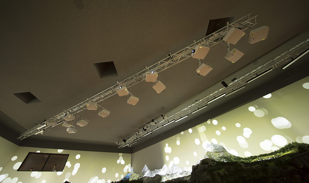 To manage the content, a total of 39 Pandoras Box. Projectors and playback devices are controlled by Coolux Widget Designer Pro, through a three-way interface that continuously indicates the status.