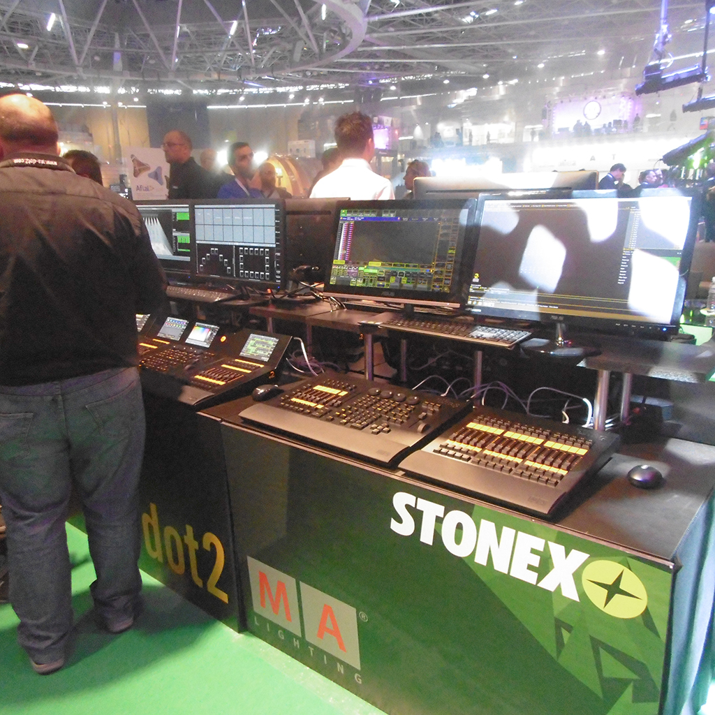 En el centro de su espacio expositivo en este certamen destacaba la consola Dot2 de MA Lighting y las prestaciones para mejorar el flujo de trabajo que ofrece la última versión de su software.