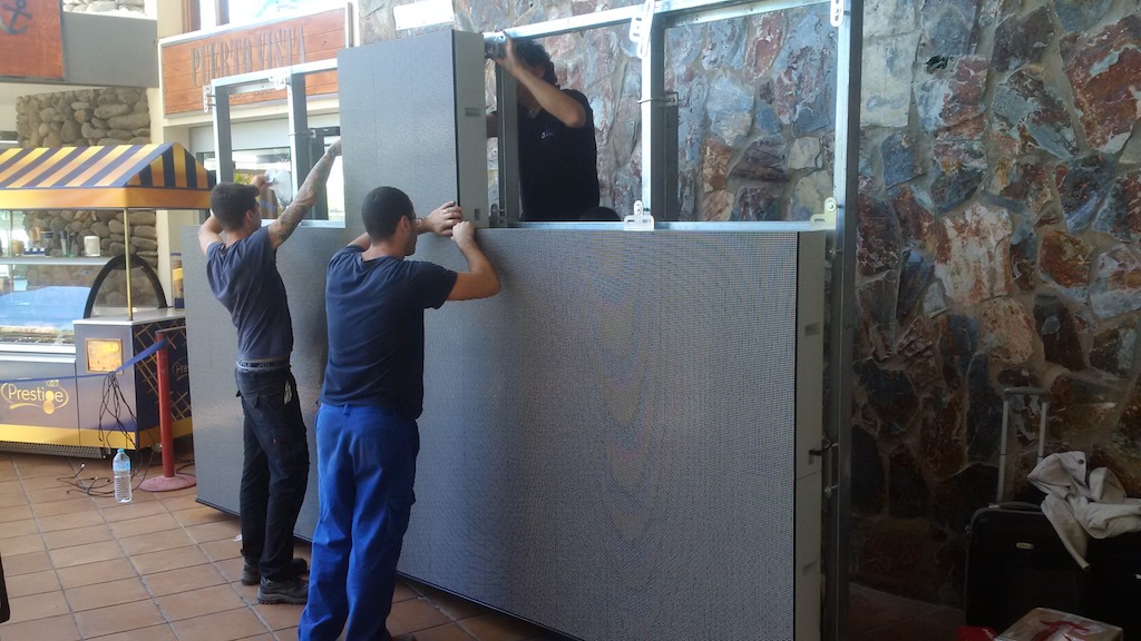 Esta solución se basa en una pantalla profesional Led del fabricante Roll call of more than 8 metros cuadrados de superficie, con alto brillo, píxel pich reducido y formato 16:9 que puede utilizarse en exteriores.